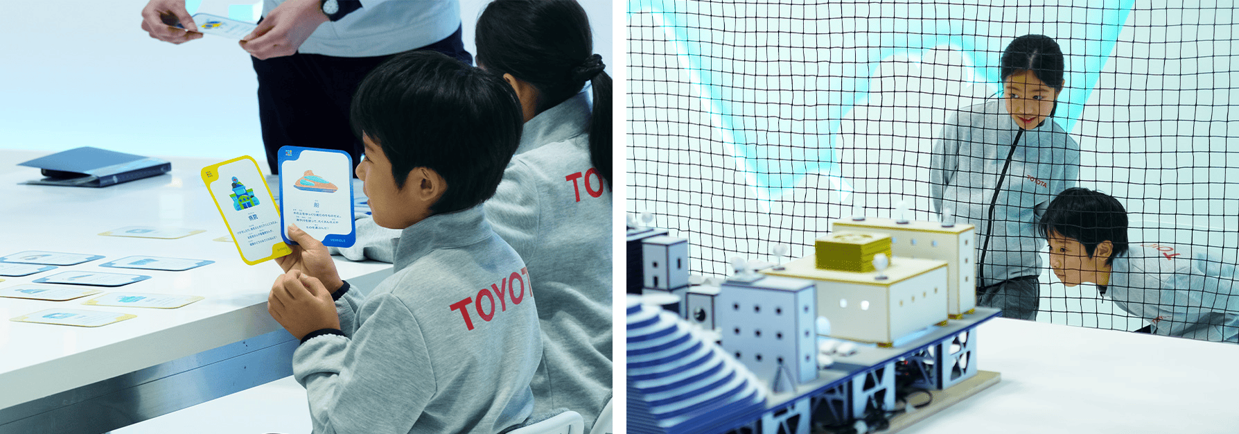 子どもたちは研究員として、「のりもの」と「たてもの」を組み合わせ、社会の困りごとを解決する未来ののりものの使い方を発想します。さらに、街のジオラマを使い、組み立てた「空とぶのりもの」の飛行テストを実施。自分の手で動かしたモビリティが街に光や動きを生み出す体験を通じて、“未来をつくる”ことの楽しさと可能性を体感できるプログラムとしました。