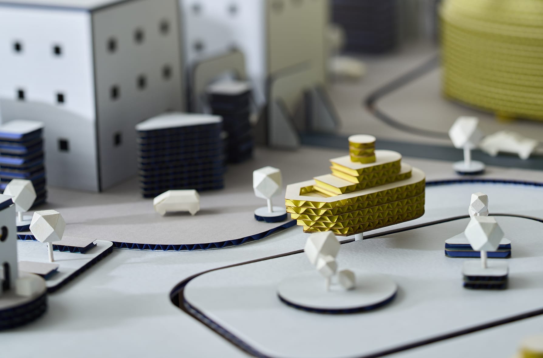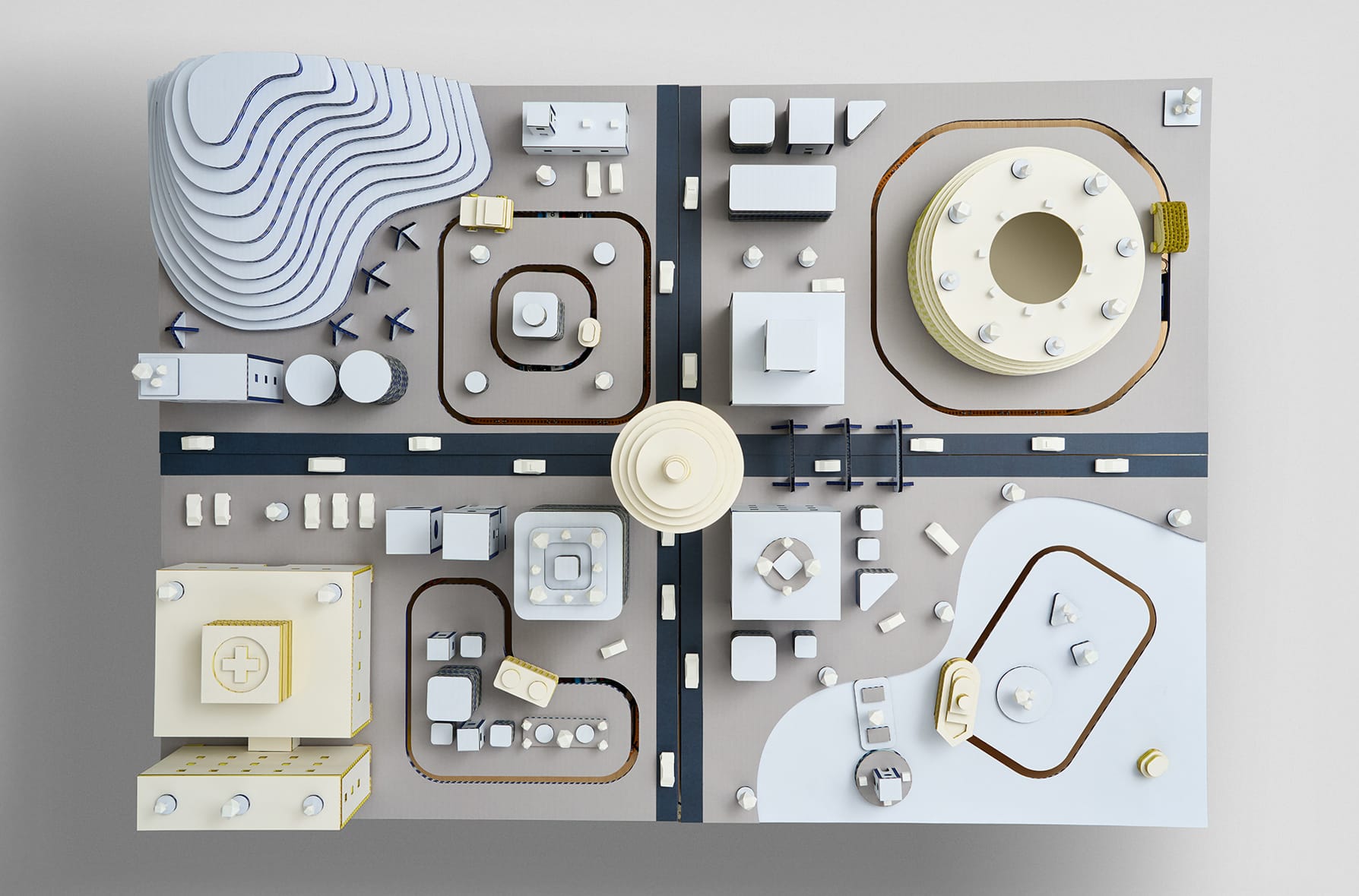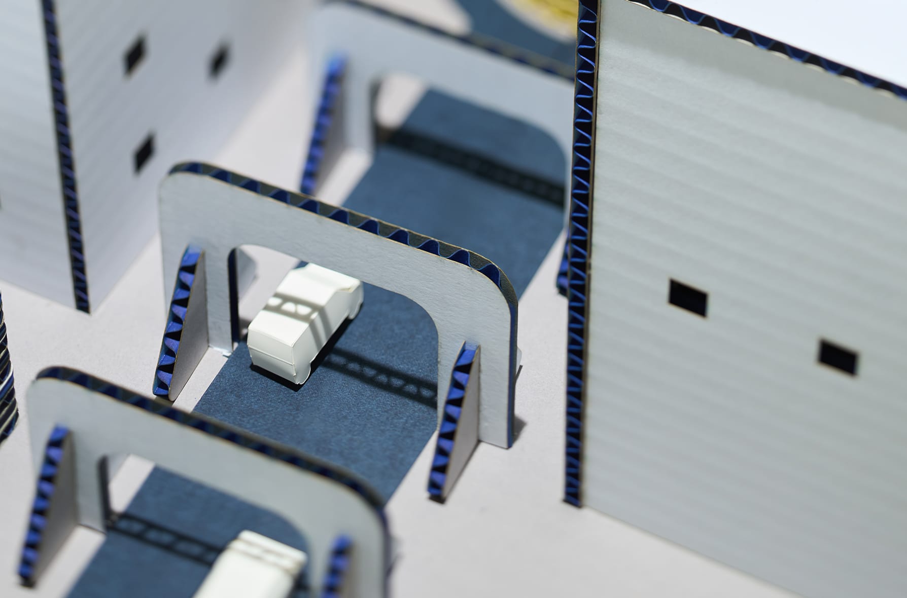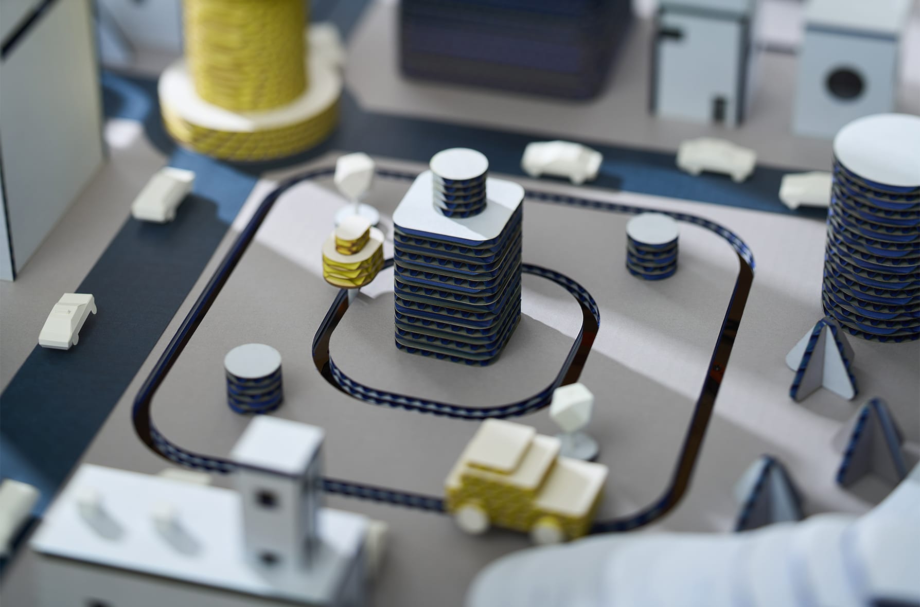 一人ひとりがバッテリーを取り付け、カウントダウンとともにのりものがゆっくり浮かび上がると、ジオラマの建物に明かりが灯り、小さなモビリティが動きはじめ、街が少しずつにぎやかになっていきます。
