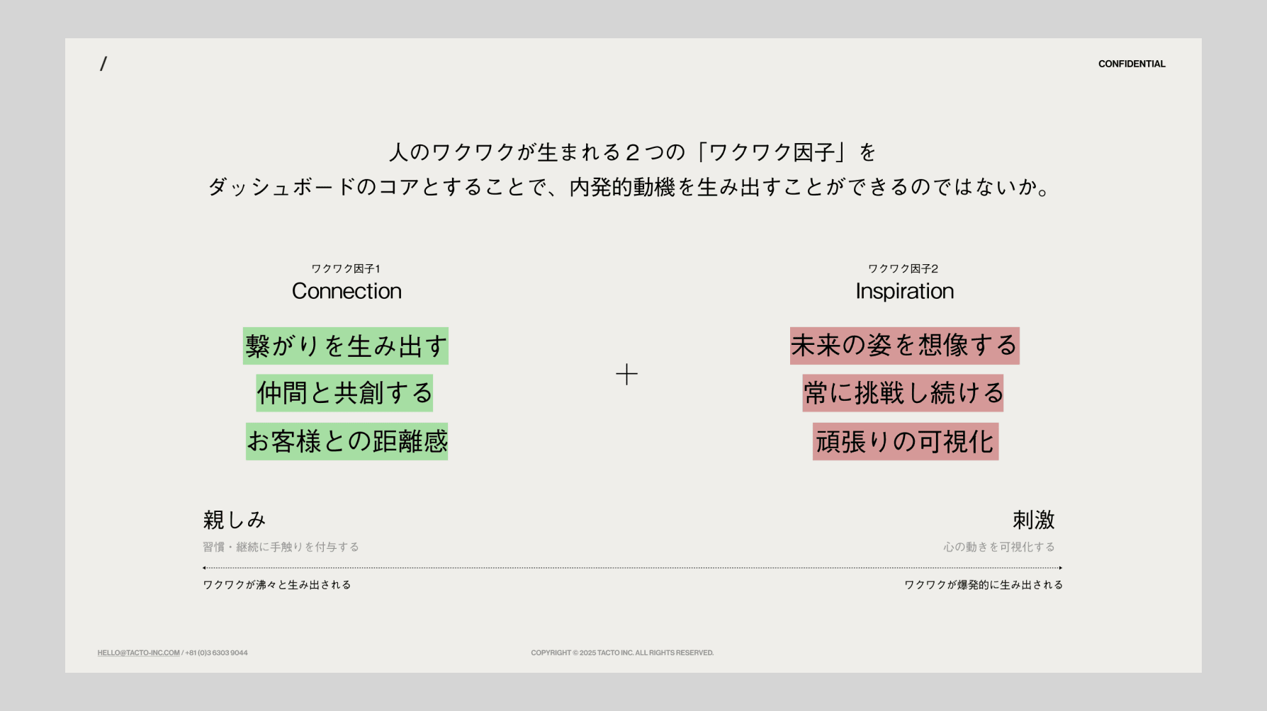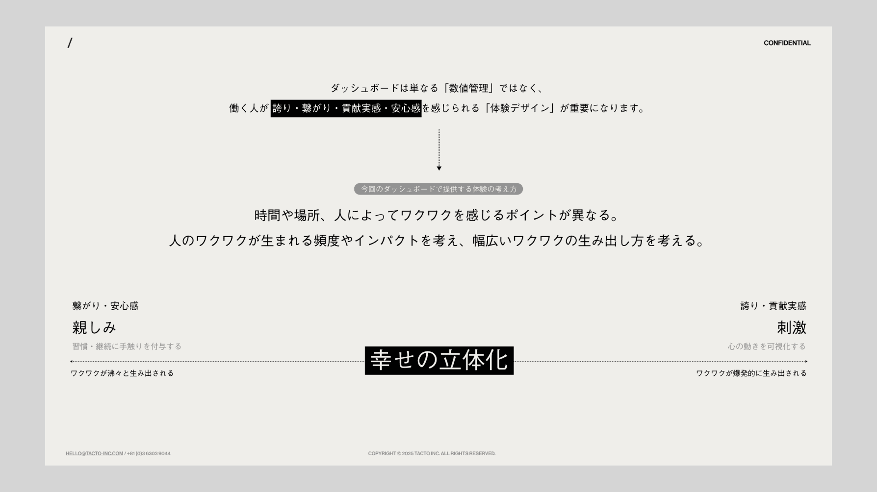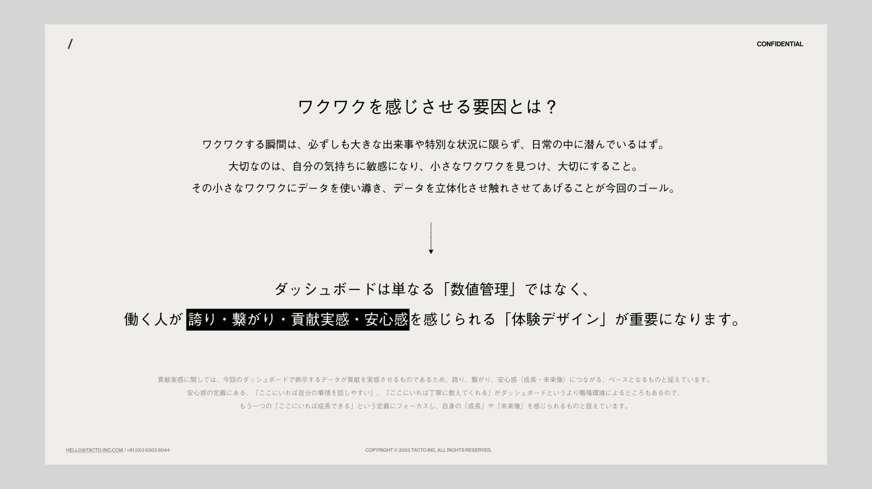 今回のダッシュボードでは、その“小さなワクワク”をデータによって導き、情報を立体化して、触れられるかたちにすることをゴールとして定義しました。